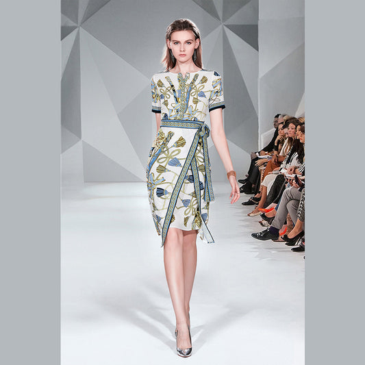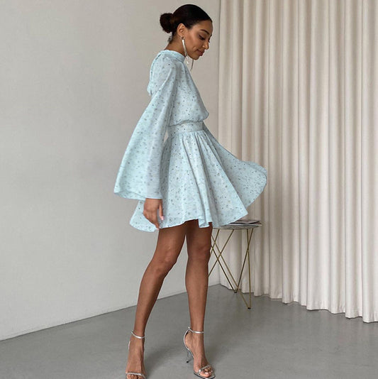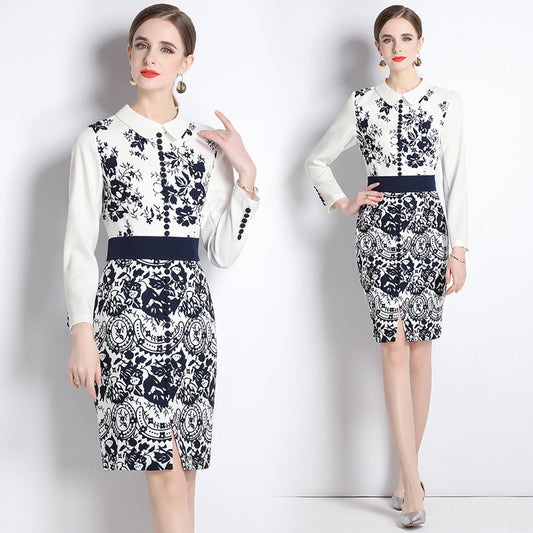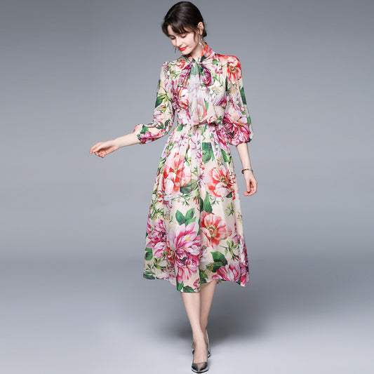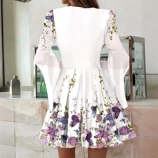 Robe imprimée décontractée à col en V et manches longues pour femme