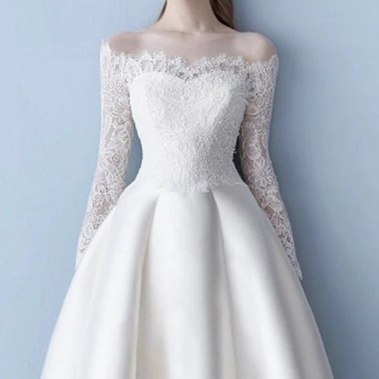 Robe de mariée traînante simple à manches longues et jupe princesse