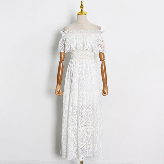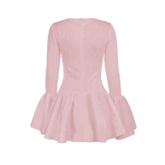 Round-neck Flared Sleeves Long Sleeve Ruffles Dress