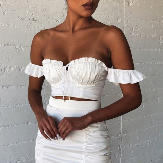 Jupe bandage queue de poisson rétro à volants, haut tube, sac, robe hanche