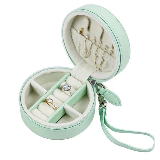 Boîte à bijoux multifonctionnelle ronde et portable pour pendentif et bague