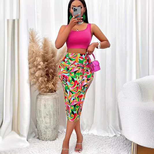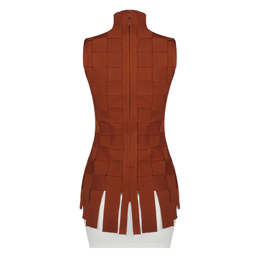 Ensemble jupe et robe moulante deux pièces pour femme, coutures à carreaux, sans manches