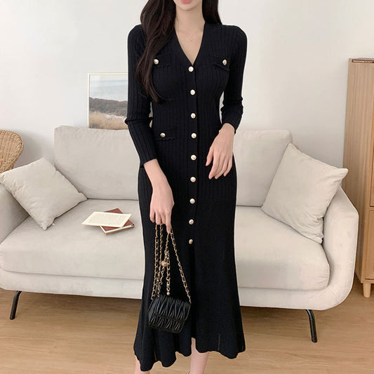 La robe queue de poisson slim à simple boutonnage est à la mode