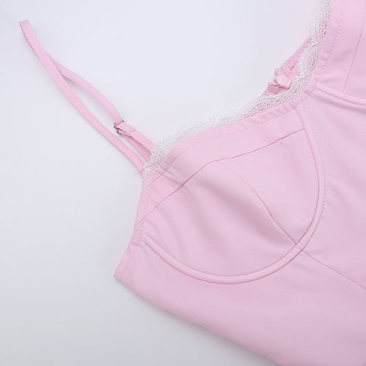Robe trapèze à bretelles et anneau en acier, coupe ajustée, flatteuse pour la poitrine