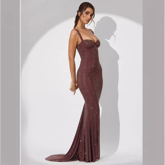 Robe moulante sans manches à strass pour femme