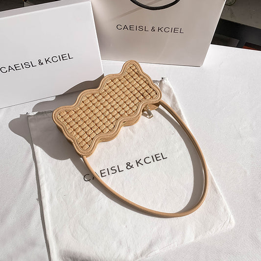 Petit sac à main tissé à une épaule pour femme, motif vagues