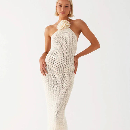 Robe cache-maillot de bain en tricot ajouré de couleur unie
