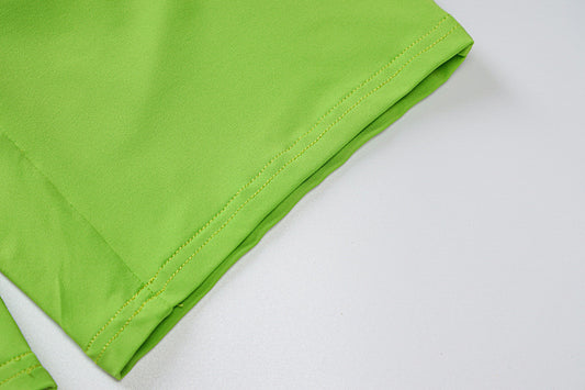 Chemisier et pantalon taille haute à manches pétales de couleur unie