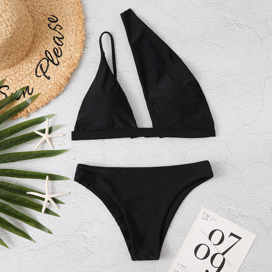 Maillot de bain bikini sexy à une épaule de couleur unie