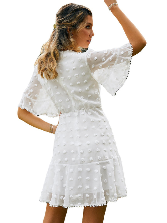 Robe en dentelle sur le devant pour le printemps et l'été, ourlet et poignets, jupe à franges en dentelle pour femme