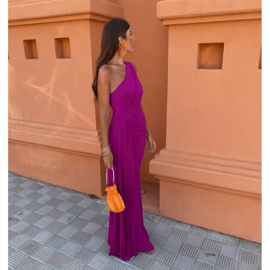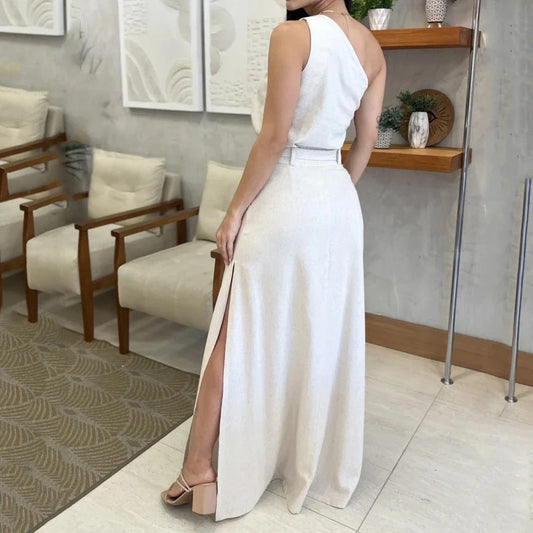 Robe longue fendue taille haute sans manches, couleur unie, nouvelle collection été