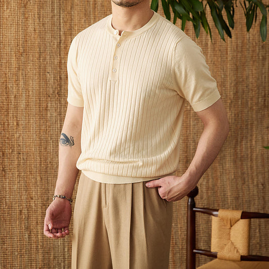 T-shirt d'été à manches courtes en coton Tencel à rayures profondes pour homme
