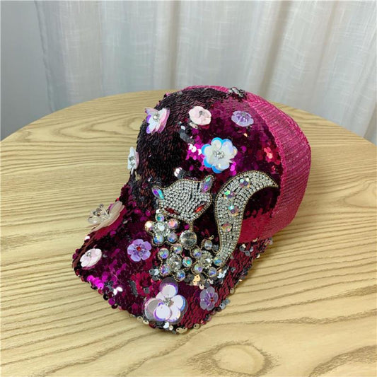 Chapeau d'été en strass avec fleur de renard