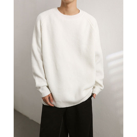 Pull col V ample pour homme, couleur unie, tricoté, bas