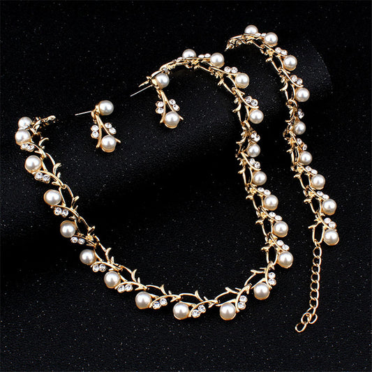 Ensemble de trois pièces : boucles d'oreilles, colliers, bagues et perles