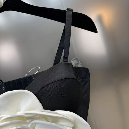 Débardeur tube dos nu à fleurs tridimensionnelles