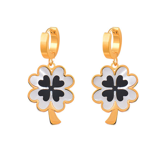 Chaîne de clavicule avec pendentif en forme de trèfle en acier titane et coquillage blanc