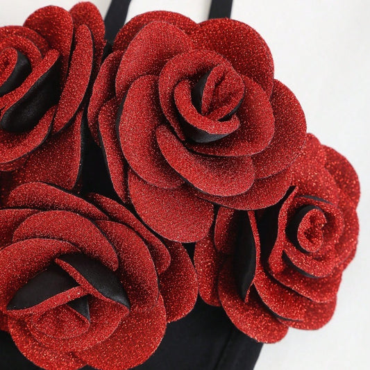Jupe courte à fleurs tridimensionnelles, robe à bordures croisées françaises