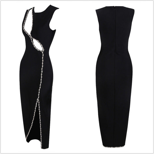 Robe élégante en velours à paillettes, col en V, dos nu, manches courtes