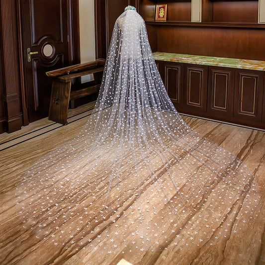 Voile traînant en dentelle pour mariée vintage, hôtel, pelouse, mariage, étoile