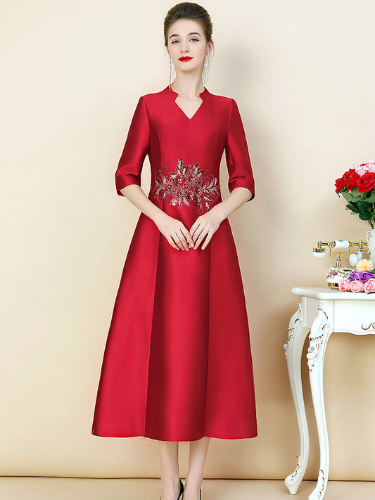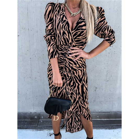 Robe élégante à col en V et manches lanternes pour femme, motif floral tridimensionnel