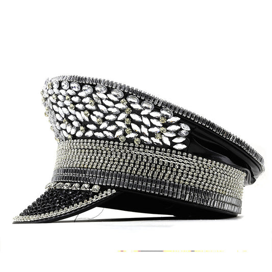 Chapeau de diamant pour femme, chapeau de photographie à paillettes argentées, casquette à visière, chapeau à dessus plat, casquette de performance