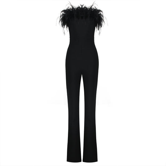 Combinaison bandage à plumes et haut tube gracieux pour femme