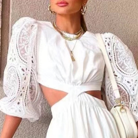 Robe fourreau à bretelles en tricot ajouré pour femme