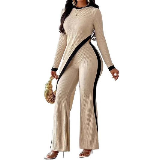 Women's Fashion Long Sleeve Side Slit T-shirt Trousers Suit