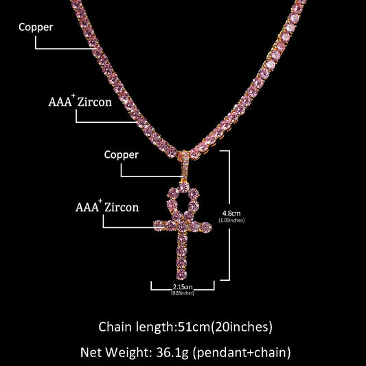 Chaîne de tennis avec pendentif en zircon coloré style hip-hop pour femme