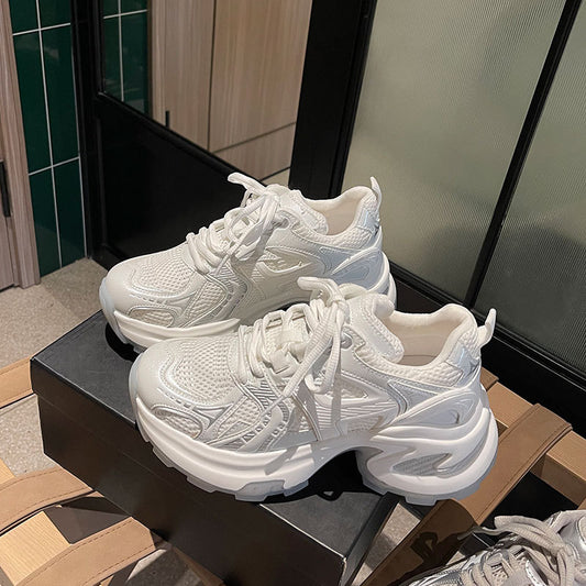Chaussures pour femmes, baskets argentées respirantes à plateforme et surface en maille