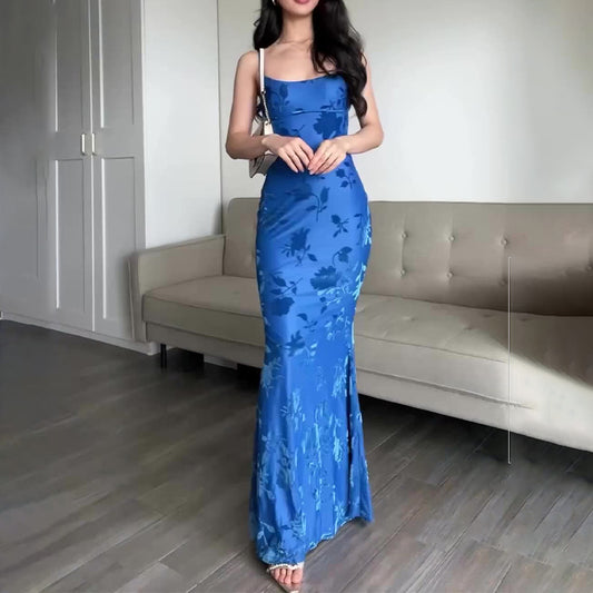 Robe queue de poisson légère et luxueuse pour femme, imprimée, coupe ajustée