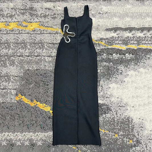 Jupe longue bandage en maille sans manches à col carré pour femme
