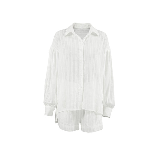 Ensemble deux pièces chemise et short en jacquard à rayures blanches pour femme
