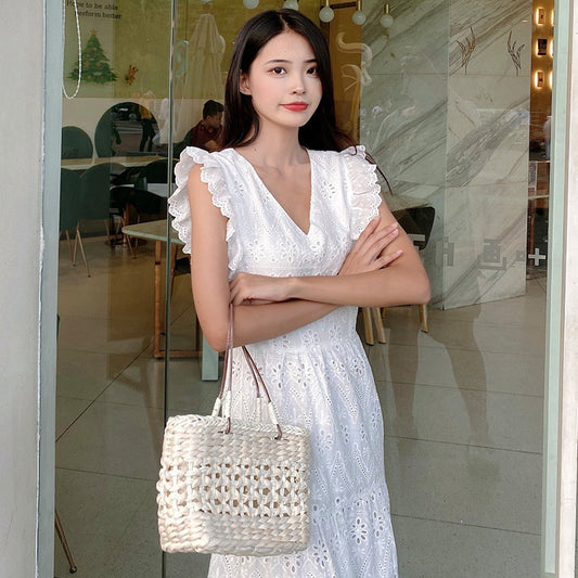 Robe en dentelle super féerique de style doux avec manches volantées