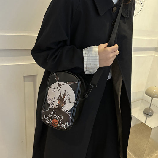 Sac à bandoulière pour téléphone portable avec motif graffiti d'Halloween pour filles, motif citrouille, fantôme, chauve-souris, amusant, pour femmes, mini sacs à bandoulière créatifs