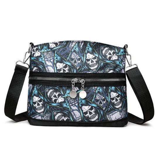 Sac à bandoulière imprimé tête de mort pour femme, imperméable, grande capacité, fermeture éclair