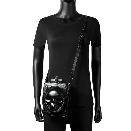Sac à bandoulière tête de mort d'Halloween, style gothique foncé, pour femme, mini sac messager carré
