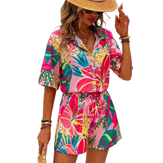 Hawaiian Style Short Sleeve Shirt Shorts Suit