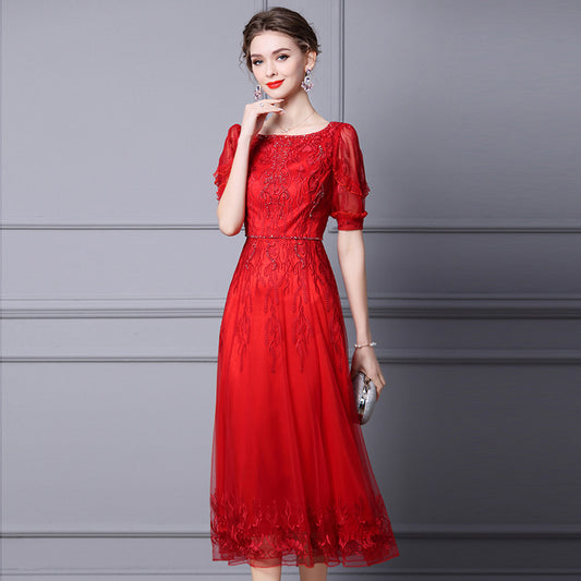 Robe de soirée en dentelle creuse brodée de haute qualité