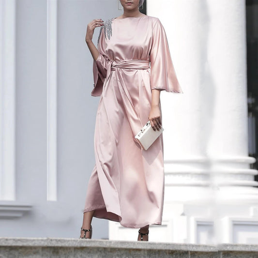 Robe tunique féminine Loriya, robe en satin de Dubaï