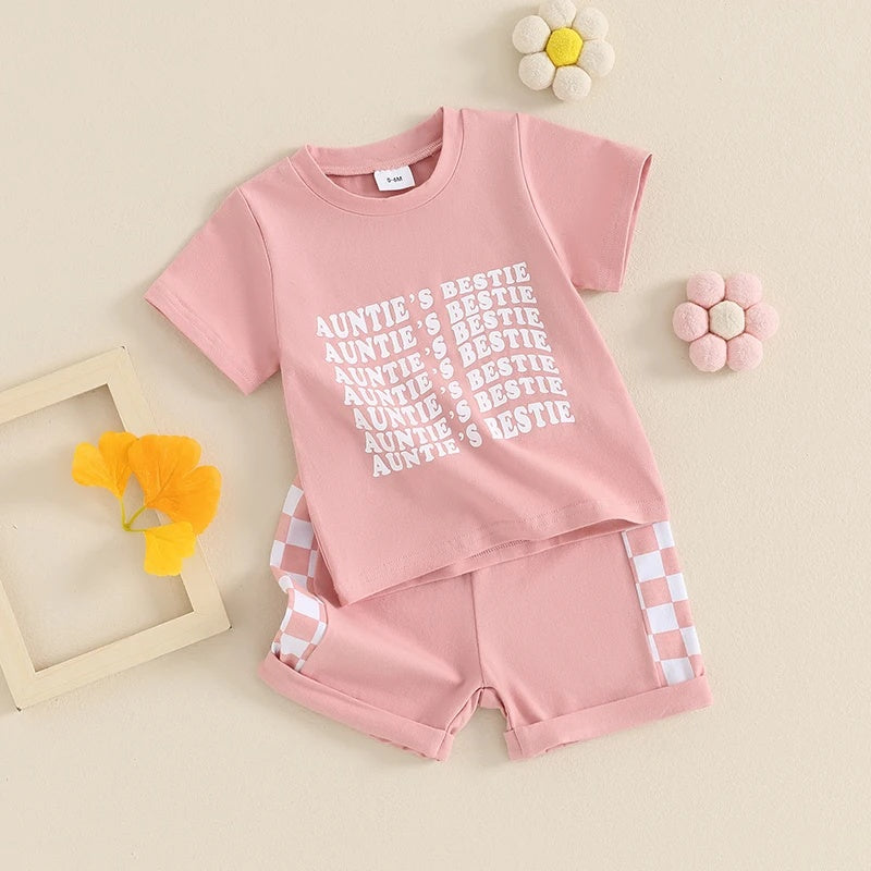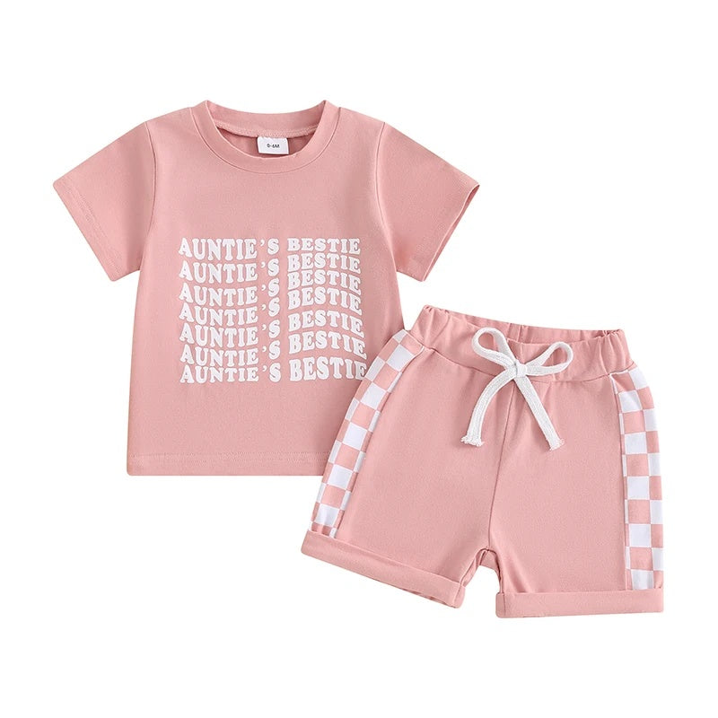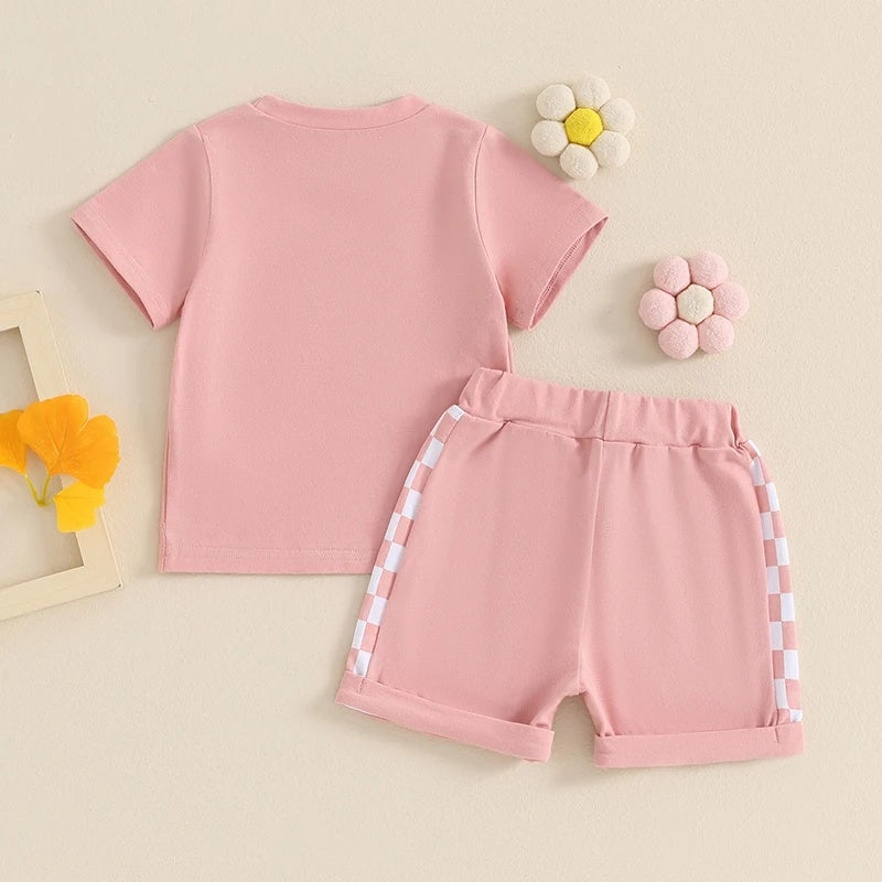 Ensemble décontracté à manches courtes et imprimé écossais pour filles