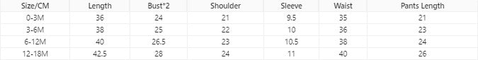 Spécifications : 0-3M, 3-6M, 6-12M, 12-18M