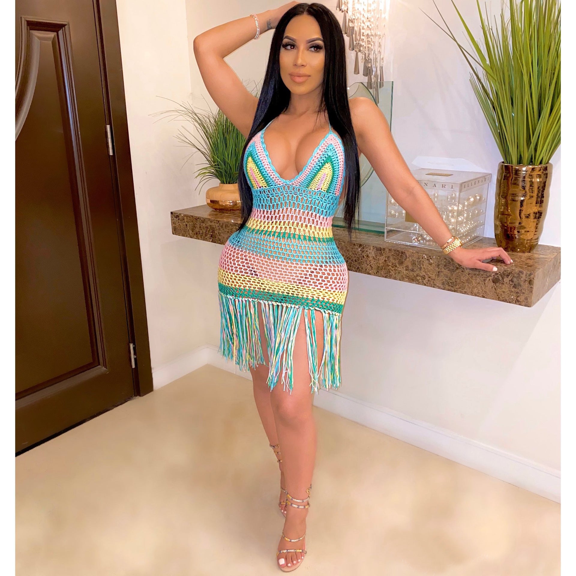Éléments populaires : dentelle, perspective, dos ouvert, creux, crochet fleur creux, nombril, couture de couleur