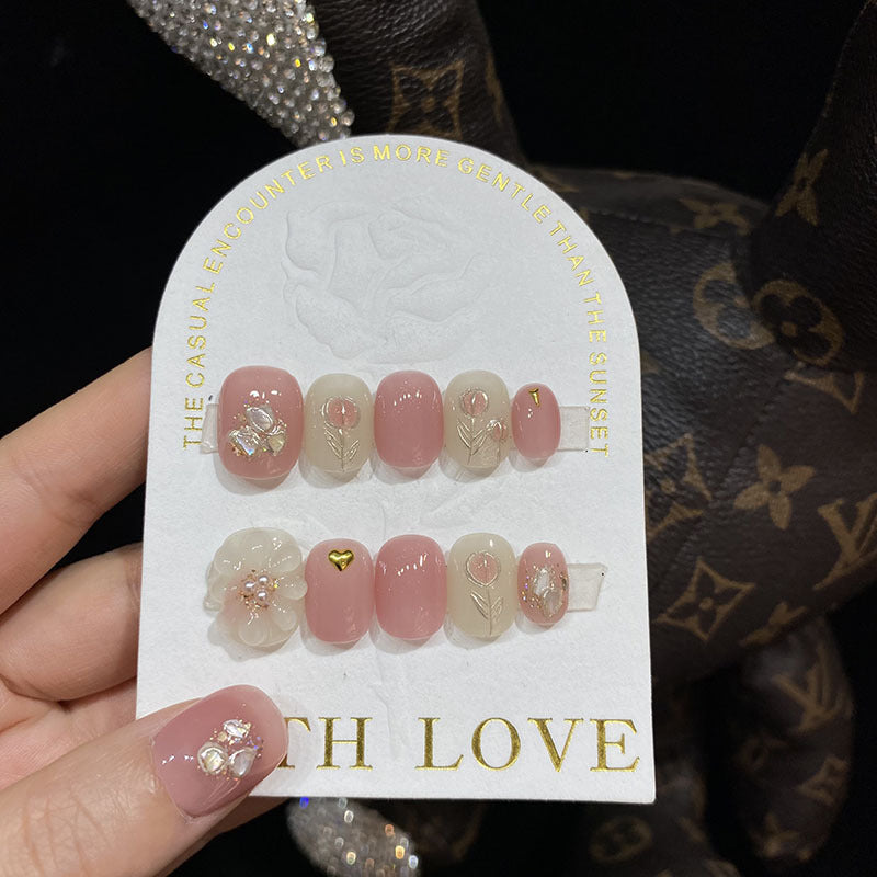 Tranches d'ongles * 10 pièces + Colle gelée * 1 + Colle * 1 + Coton imbibé d'alcool * 1 + Bâton de bois * 1 + Bande de frottement * 1