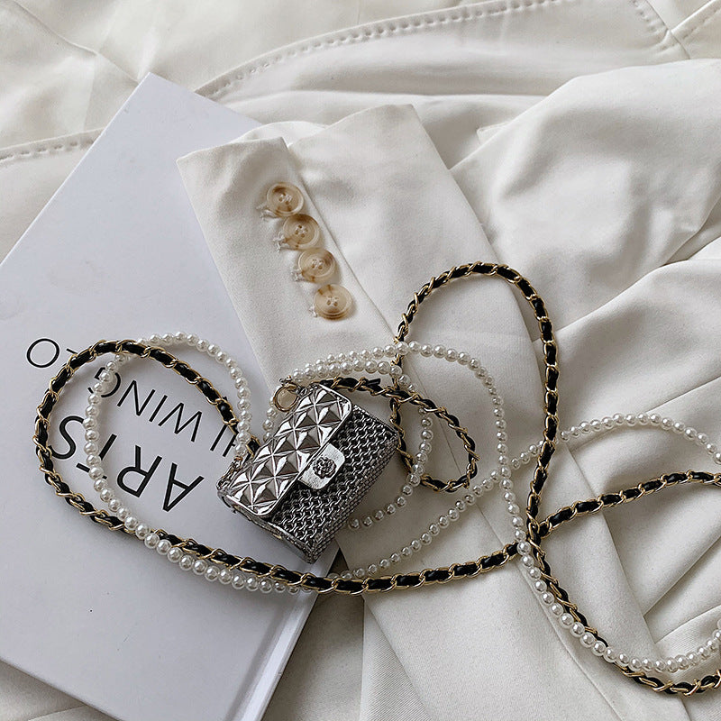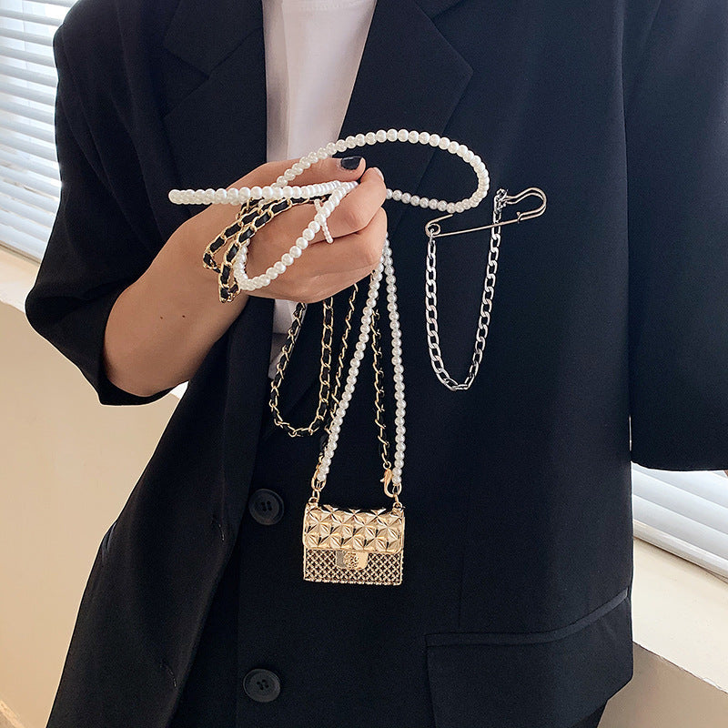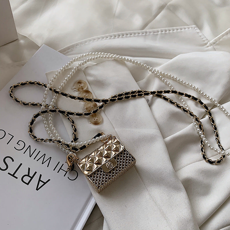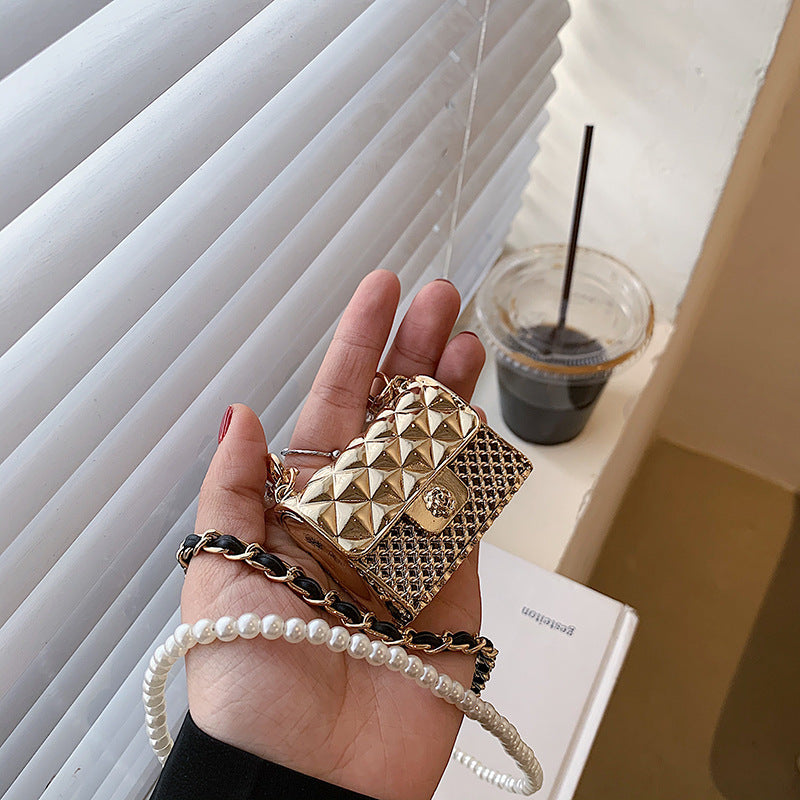 Sac pour écouteurs, sac tour de cou suspendu à chaîne rhombique, sac banane pour femme, sac messager