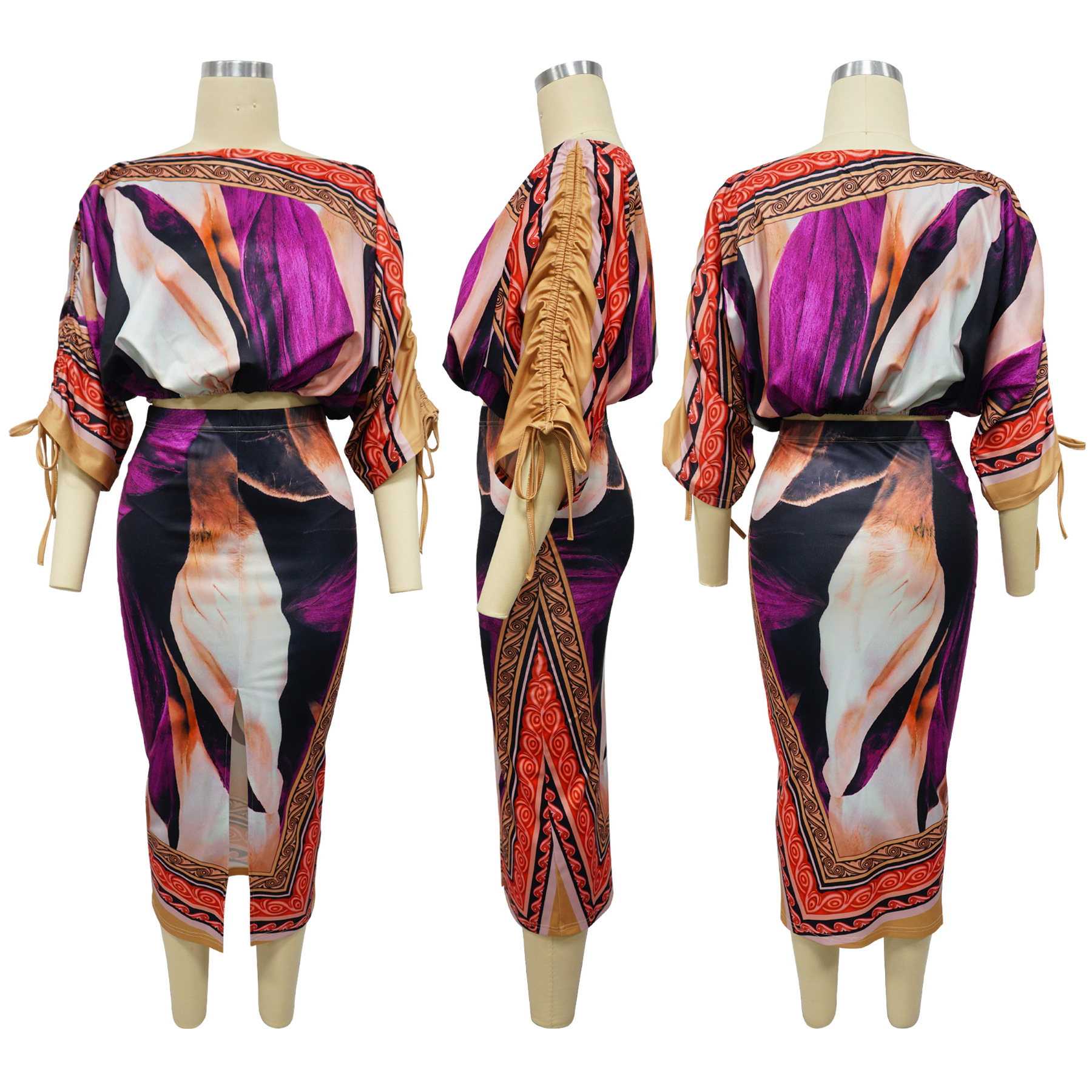 Fashion Women's Wear Positioning Printing Off-the-shoulder Split Skirt Suit