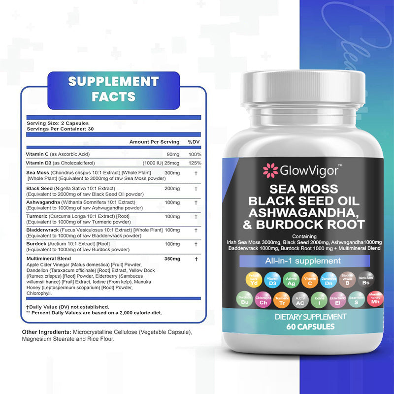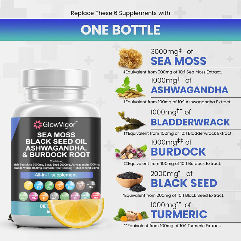 GlowVigor Sea Moss, Black Seed Oil, Ashwagandha supplement