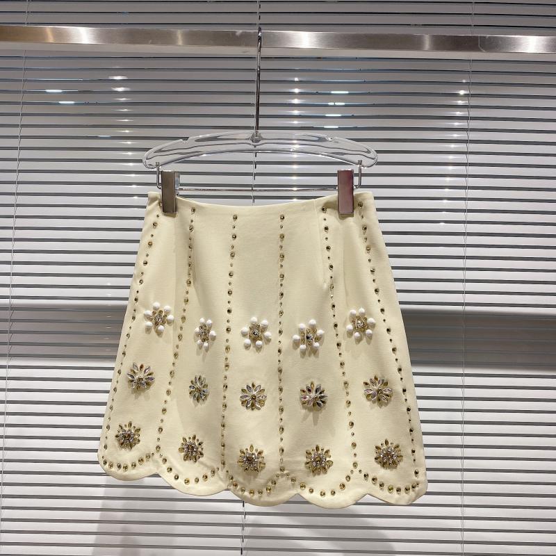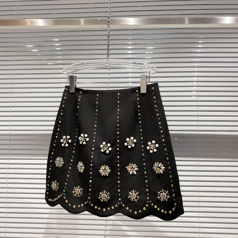 Handmade Three-dimensional Rhinestone Flower Beaded Gradient A-line Skirt