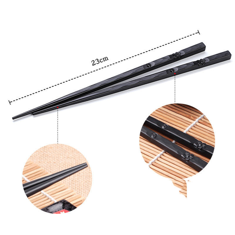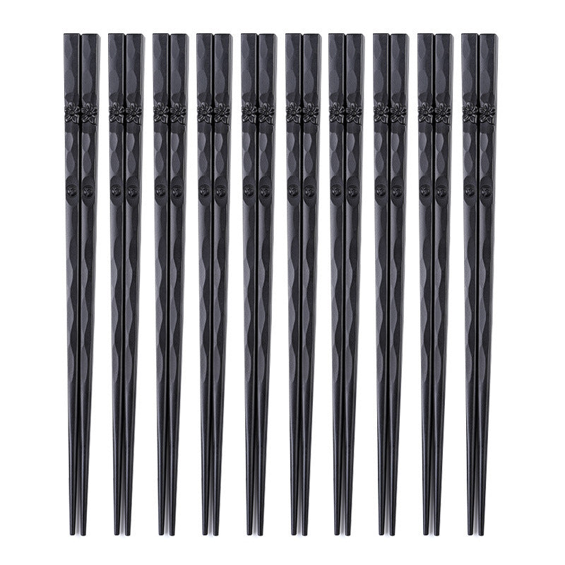 Color: 24CM square black Chinese round head romantic cherry blossoms chopsticks 10 pairs matte black, 24CM square black Japanese pointed sea wave chopsticks 10 pairs matte black, 23CM square black Japanese pointed cherry blossom chopsticks 10 pairs matte black, 25CM octagonal Japanese pointed water ripple chopsticks 10 pairs matte black, 27CM square black Chinese round head romantic cherry blossoms chopsticks 10 pairs matte black